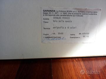 Vendo opera di Osvaldo Peruzzi "Volo sulle nuvole", completa di cornice