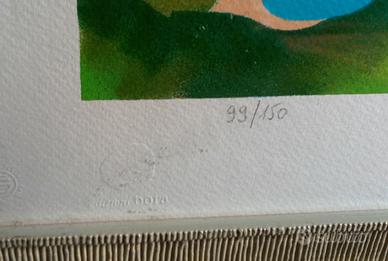 Serigrafia a 19 colori. Esemplare 98/150. Firmato a matita in basso a destra. Numerato a matita in basso a sinistra. Edito da La Bora. Etichetta con garanzia di autenticità La Bora.