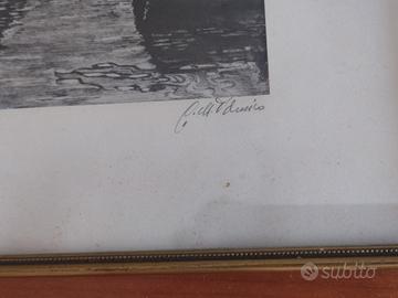 Serigrafia su seta firmata in basso a destra da Giuseppe Mario D'Amico, intitolata"Bragogni". Le dimensioni della stoffa in seta dove è riportata la serigrafia all'interno del quadro sono 17cm x24cm. Il quadro ha la cornice e vetro risalente ai suoi anni.