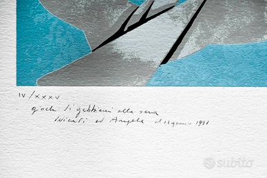 Serigrafia dimensioni 35x25 di Francesco Vaccarone, anno 1987, titolo Volo di gabbiani. Sarò presente a La Spezia nella giornata del 30.11 e, se ci sarà chi acquisterà nell’occasione, regalerò anche una elegante cornice.