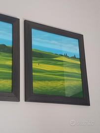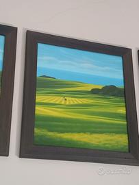 trittico di serigrafie di Daniele Fissore con cornici Fly green a b c a tiratura limitata.