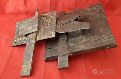 Vendo serrature antiche in ferro battuto antiche dell'800, la grande misura 28 x 28 x 28 x 23 cm, sede della chiave alto 7 cm x 2 cm, staffa di chiusura lunga 32 cm larga 3 cm x 1 cm. Peso 3 kg. La piccola misura 20 cm x 14 cm x 17,5 cm, staffa di chiusura lunga 29 cm, larga 3,5 cm x 0,5 cm, sede della chiave alta 3 cm x 1 cm, peso 1 kg. Peso totale 4 kg. Prezzo 60 euro in blocco. Spedizioni in tutta Italia e in tutto il mondo!!! Per ogni info e dettagli contatto solo via telefono o Whatsapp al numero 349-0869294.