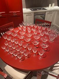 Vendo come da foto servizio vintage composto da: 8 bicchieri acqua 11 bicchieri vino 12 bicchieri cocktail 9 bicchieri liquore 11 bicchieri liquore piccoli A parte a 30€ la brocca abbinata. Per ovvie ragioni è preferibile il ritiro a mano.