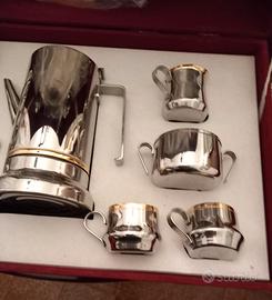 Vendo servizio da caffè vintage anni 80 in acciaio inox 18-10 e oro zecchino 24 K completo di: