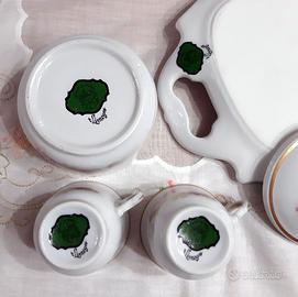 Vendo mai usato, vintage anni 90, tenuto in vetrina, in ottimo stato, nessuna sbeccatura, solo il vassoio presenta leggero scolorimento nel bordino, forse da luce solare.