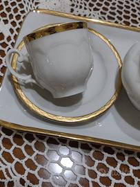 Servizio da caffe' per due persone -Seltmann weiden Bavaria composto da vassoio,zuccheriera due tazzine e due piattini. Porcellana finissima bianco con profili in oro mai usato