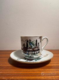Bellissimo servizio da caffè vintage in finissima porcellana giapponese stile "Eggshell" (guscio d'uovo), caratterizzato da una trasparenza e leggerezza uniche.