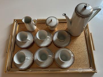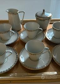 Vendo belissimo servizio caffe’ completo per 6 persone in porcellana colore avorio con decorazione geometrica in oro: