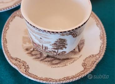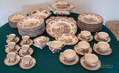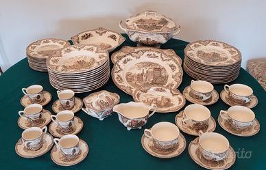Servizio vintage JOHNSON BROS , decoro Old Britain Castles Brown , piatti - tazze - tazzine - insalatiera - zuppiera - zuccheriera, tot. 55 pz. , perfette condizioni , consegna diretta .