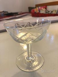 Servizio con 6 coppe in cristallo, secchiello per il ghiaccio, e shaker per cocktail anni 50