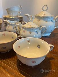 Servizio da 12 Marie Luise Seltmann Weiden Anni 20. In fine porcellana, decorata a mano. Perfettamente conservati, in condizioni impeccabili. Ogni pezzo riporta il suo marchio di autenticità e la sua numerazione. Il servizio è prodotto dalla prestigiosa manifattura tedesca Seltmann Weiden e la linea "Marie Luise" è un modello classico e molto apprezzato. 12 tazze da tè, teiera, zuccheriera e brocca per il latte. Un servizio unico, anche e soprattutto, per la numerosità del servizio (che solitamente è di 6 posti tavola). Bello da possedere, da utilizzare, da esporre ma anche da regalare. Pregiato e prezioso. Pezzi unici ed esclusivi della storia inglese. Un servizio unico. Introvabile. Bellissimo.