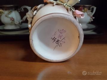 Porcellana decorata con fiori applicati in rilievo, tipica manifattura Capodimonte del Novecento (anni ’60–’80).