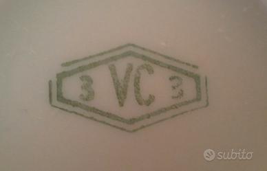Vendo un raffinato servizio da caffè per 12 persone, composto da 12 tazzine complete di piattino. Ogni tazzina è costituita da un "liner" in porcellana con marchio VC, impreziosita da un fine profilo in oro zecchino sul bordo superiore. La porcellana è alloggiata in una montatura a cestello in argento con manico a ricciolo lavorato. Anche i piattini sono realizzati in argento.
