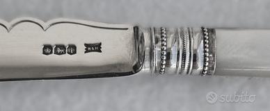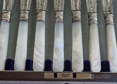 Splendido set di 12 posate da frutta o dessert in argento massiccio con custodia, con manico in madreperla, punzonato Sheffield 1926, di Walker & Hall, realizzato nel loro laboratorio di Howard Street, Sheffield.