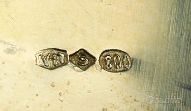 Marchiature sul fondo di ogni contenitore e sul vassoio " 800 - 58 /30 PD (Uno con il simbolo del leone di San Marco alato e nimbato) " come da foto.