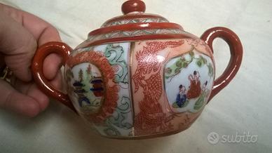 VENDO A 80 EURO PREGIATO SERVIZIO DA TE’ GIAPPONESE IN FINISSIMA PORCELLANA CON LITOGRAFIE RAPPRESENTANTI GHEISE E MOMENTI DI VITA GIAPPONESE. DECORATO A MANO ANNI’40, COMPLETO DI OGNI SUO PEZZO ED IN PERFETTE CONDIZIONI. LA PARTICOLARITA’ DEL SERVIZIO È LA SOTTILISSIMA PORCELLANA INFATTI SUL FONDO DELLA TAZZA SE ESPOSTA ALLA LUCE APPARIRA’ L’IMMAGINE DI UNA BELLISSIMA GHEISA. A CHI INTERESSATO POSSO INVIARE ALTRE FOTOGRAFIE. NON UTILIZZO SUBITO PER PAGAMENTO E SPEDIZIONE. SE NON È POSSIBILE UN INCONTRO DIRETTO PER CONCLUDERE LA TRASLAZIONE DEL SERVIZIO DA THE, IL PAGAMENTO DEVE AVVENIRE ANTICIPATAMENTE TRAMITE BONIFICO O ALTRO SISTEMA DI PAGAMENTO TELEMATICO. PER L’EVENTUALE SPEDIZIONE È UTILIZZATO CORRIERE TRACCIABILE POSTE ITALIANE O CORRIERE GESTITO DELL’ACQUIRENTE.