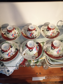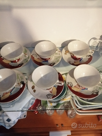 Servizio da te antico risalente al 1930 circa, in porcellana giapponese, spessore sottile tale da consentire il filtrare della luce in controluce,con decorazioni a mano . Sei tazze e sei piattini.