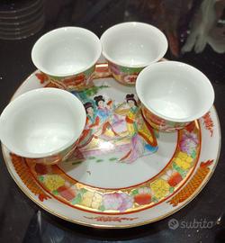 Servizio da thè sake cinese antico in miniatura. Risalente probabilmente agli anni '70 del Secolo scorso. In pregiata porcellana cinese. Particolarissimo per le sue dimensioni micro. Decorato a mano. Da collezione!