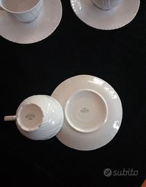 Servizio da thè in porcellana bianca produzione Tognana Royal composto da 6 tazze + 6 piattini con motivo ondulato. Praticamente mai usata e integra.