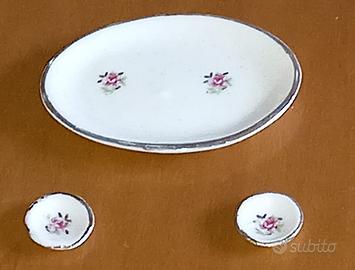 SERVIZIO DA THE X 2, INSERIBILE IN CASA DELLE BAMBOLE . COMPRENDE 2 TAZZINE (DIAM CM 1.2) CON I PIATTINI (DIAM CM 1.5), THEIERA (H CM 3.7 CON COPERCHIO), LATTIERA(H CM 2.2), ZUCCHERIERA (H CM2.6 CON COPERCHIO), VASSOIO(LUNGH CM 6.5, LARGH CM 4.5). RITIRO A CURA DELL'ACQUIRENTE IN ZONA GENOVA QUARTO. NO SPEDIZIONE