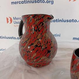 Servizio di 5 coppe e brocca in vetro avventurina