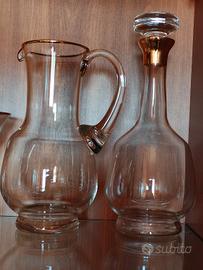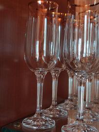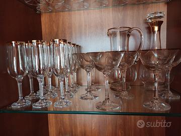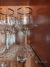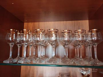 Pregiato servizio di bicchieri in cristallo di BOHEMIA made in CZECHOSLOVAKIA con bordo dorato e base in vetro scanalato. Mai utilizzato, tenuto da sempre in vetrina. Composto da 35 pezzi + 6 da Cocktail in aggiunta di un altro servizio. In totale 41 pezzi. Il prezzo è trattabile.
