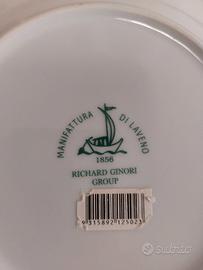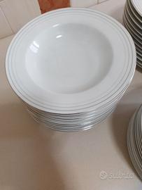 Vendo questo servizio di piatti Manifattura RICHARD GINORI, composto da 12 piatti piani diametro 24cm, 12 piatti fondi diametro 22 cm e da 12 piatti frutta diametro 19 cm, colore bianco con bordi in platino, nuovo mai usato privo di qualsiasi difetto,