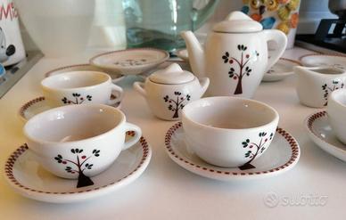 Vendo servizio in porcellana My Doll , composto da sei piattini e tazzine da caffè, sei piatti da dolce, una zuccheriera, una teiera, ed una lattiera. Ogni pezzo è decorato. E' molto bello e originale. Nuovo, nella propria confezione originale.