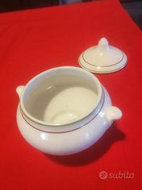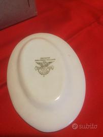 Servizio piatti in miniatura, da gioco, Società ceramica ITA., Laveno, anni '30, comprendente: 4 piatti , 4 fondi, scodella, zuppiera con coperchio, 2 ovali da portata (piccolo, grande). Il coperchio della zuppiera ha una leggera sbrecciatura al coperchio.