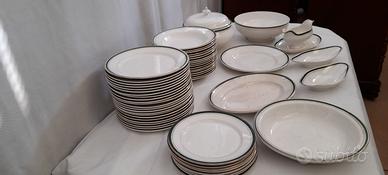 -Servizio piatti in porcellana , fine 800 primi 900 .E' composto da 56 pezzi : 1 zuppiera con coperchio 1 piatto a fondina grande 1 piatto ovale grande 1 piatto rotondo grande 1 boule grande 8 piatti piccoli 23 piatti piani 17 piatti fondi 2 porta olive 1 salsiera Marchiato DIGOIN 6 SARREGUEMINES,FRANCIA Mui
