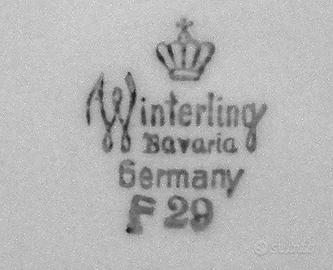 Servizio porcellana anni '60 del secolo scorso, Winterling - Bavaria. Perfettamente conservato, senza rottura, incollature o parti mancanti. Il servizio da frutta o da dolce è composto da nove elementi. Vero affare!