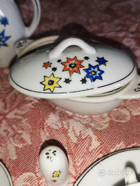 Servizio vintage per bambola in porcellana così composto 3 tazzine con piattino 1 zuccheriera una caffettiera senza coperchio 1 lattiera 1 zuppiera 1 saltino posso SPEDIRE CO4 7/2