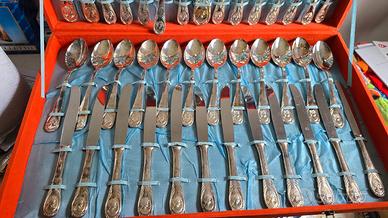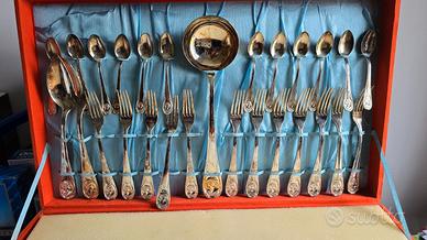 Servizio Posate ×12 Rostfrei Arg. 800 Placcato Vintage Placcato Argento Le posate recano segni di naturale "ossidazione" e del tempo. La scatola è originale ha segni del tempo.