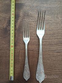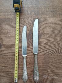 Servizio posate antiche da 12 placcato argento 800. Sono 75 pezzi in totale, ci sono: 12 forchette piccole, 12 forchette grandi, 12 cucchiaini, 12 cucchiai, 12 coltelli piccoli, 12 coltelli grandi più un mestolo, un forchettone e un cucchiaio da portata.