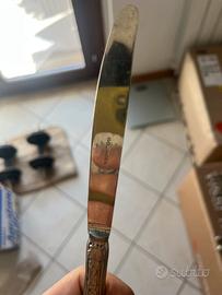Le lame riportano alcune leggere sfumature dorate dovute all’usura naturale del tempo, tipiche delle lavorazioni originali Solingen. Questo non compromette minimamente l’uso né la qualità del pezzo, anzi ne sottolinea la storia e il fascino vintage.