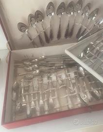 Vendo elegante servizio di posate per 12 persone, bagnato nell’argento,completo e in buone condizioni, mai usato. Ritiro a vs carico. Il set comprende: •forchette •cucchiai •cucchiaini •coltelli (lama in acciaio INOX) E tutto il servizio frutta o dessert, totale 85 pezzi. Design classico e raffinato, ideale per tavole eleganti, uso quotidiano o come complemento d’arredo. Le posate sono conservate nella scatola originale, come da foto. ✔️ Servizio completo ✔️ Ottima presenza estetica ✔️ Ideale anche per seconde case o utilizzo pratico