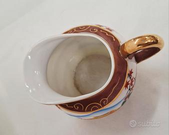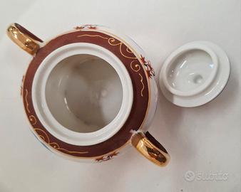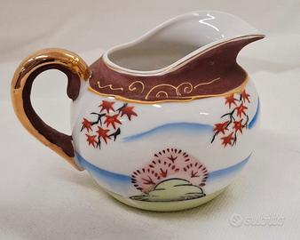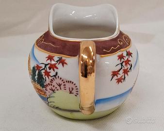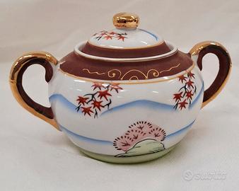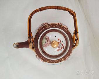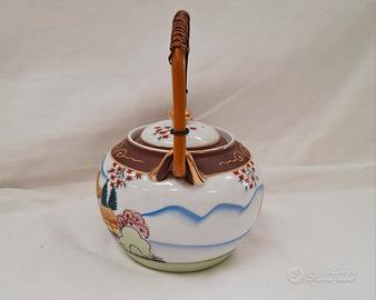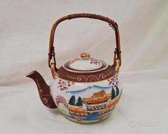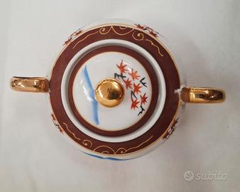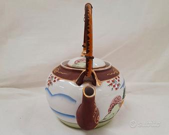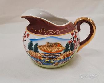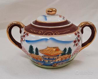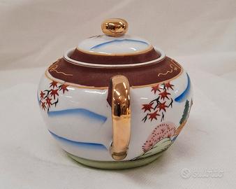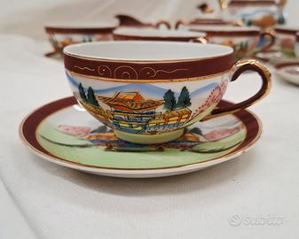 Servizio da tè giapponese Satsuma per 6 persone, vintage, realizzato in porcellana Fine China con effetto Moriage sul fondo delle tazzine. Include sei tazzine, sei piattini, teiera, lattiera e zuccheriera. In ottime condizioni.