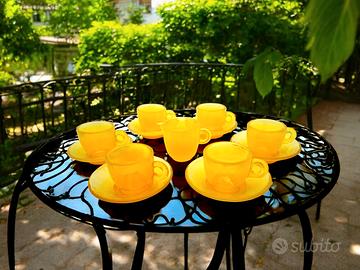 Immergiti in un'atmosfera calda e accogliente con il servizio da caffè Yalos. Realizzato in pregiato vetro opalino giallo dalle sfumature cangianti, questo set è la scelta ideale per gli amanti del vetro di Murano che desiderano impreziosire la propria tavola con una nota di colore vivace.