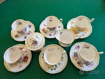 Elegante servizio parziale della prestigiosa manifattura inglese Queen's (Rosina China Co.). Questa serie da collezione celebra i mesi dell'anno attraverso decorazioni floreali raffinate e dettagliate. Il lotto include: - 6 Tazze da tè con relativi piattini corrispondenti ai mesi (visibili: Aprile, Luglio, Agosto, Novembre, Dicembre, Febbraio). 1 Lattiera coordinata. 1 Zuccheriera con coperchio. Ogni pezzo è in Fine Bone China, decorato con bordi in oro zecchino e finemente miniato all'interno e all'esterno. Ideale per chi vuole completare la serie dei 12 mesi o per un regalo di compleanno personalizzato.