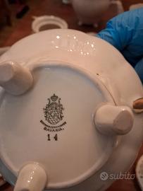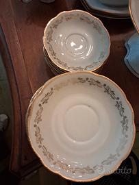 servizio da tè e caffè in porcellana della manifattura bavareseSchwarzenhammer. Il set presenta decorazioni floreali e rifiniture in oro zecchino su porcellana bianca.Prodotto dalla manifattura fondata a Schwarzenhammer, Germ ania, nota per le sue porcellane pregiate nel XX secolo. include teiera/caffettiera, lattiera, zuccheriera, tazze e piattini. alcuni pezzi mancanti