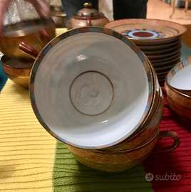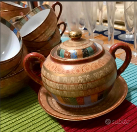 RICERCATO, ESCLUSIVO set/servizio da té Giapponese, con decorazioni intricate dipinte a mano "Mille Volti" (Thousand Faces) e dettagli in oro zecchino. Realizzato in pregiata porcellana Giapponese Kutani. Antico/Vintage riconducibile al XIX Secolo.