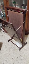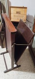 Servomuto in legno con stirapantaloni vintage anni '70. Non restaurato. Buone condizioni generali con vari graffi alla vernice. Misure H 90 cm,L 40 cm, P 32 cm