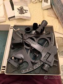 Sestante Davis "Mark 15", con telaio in plastica resistente alle intemperie, tamburo micrometrico, azionamento a vite senza fine, dispositivo di bloccaggio e regolazione fine. Graduazione dell'arco di grado da 120˚ a -5˚, 7 grandi occhiali da ombra e oculare di alta qualità con 3 lenti antiriflesso. Fornito in una custodia di plastica. Peso circa 500 g