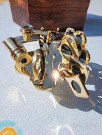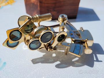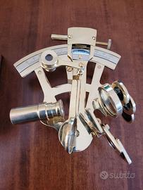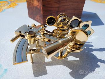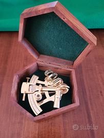 Bellissimo sestante navale inglese in ottone massiccio, con stupenda scatola in legno massello di palissandro.