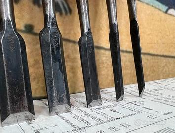 Importante set di scalpelli forgiati a mano dal famoso fabbro Iwasaki Genmasa nella zona di Sanjo.