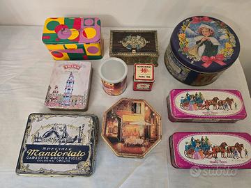 Set 10 scatole in latta come da foto. Ulteriori foto e info su richiesta