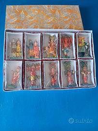 Set completo di 10 statuette in miniatura, raffiguranti importanti divinità dell’induismo e Buddha.