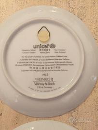 Set composto da 2 piatti da collezione da muro o da appoggio con decoro a rilievo Villeroy & Boch serie Unicef. Diametro cm 20. Vendibili anche singolarmente