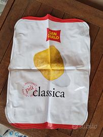 Set 3 Cuscini Gonfiabili San Carlo Classica, Più Gusto, Dixi Dimensioni cm 38 x 29 Dotati di valvola di sicurezza sul retro. Prodotti da GIEMME Srl per San Carlo. Due sono stati aperti, il modello "Dixi" è ancora nella sua confezione originale sigillata. Stampa ad alta qualità che riproduce fedelmente il pack delle patatine. Approfittane per dare un tocco "croccante" alla tua estate con questo fantastico set di 3 cuscini gonfiabili originali San Carlo, che riproducono le iconiche confezioni dei famosi snack! Il set comprende tre diversi modelli: Classica (la patatina intramontabile, bordi rossi) Più Gusto (Lime e Pepe Rosa, bordi verdi) Dixi (i mitici cornetti al formaggio, ancora sigillato!) Perfetti per la spiaggia, la piscina, il campeggio o come simpatico complemento d'arredo per appassionati di brand storici italiani. Facilissimi da gonfiare (non usare compressori elettrici come indicato sull'etichetta) e molto leggeri da trasportare in borsa. #SanCarlo #Collezionismo #Gadget #Mare #CuscinoGonfiabile #VintageStyle #dixi #lime #classica