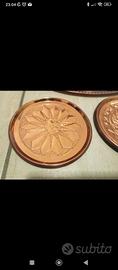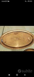 Set 3 piatti in rame: 1 vassoio (lunghezza 28 cm x 18 cm di larghezza) 2 piattini (diametro 13 cm)